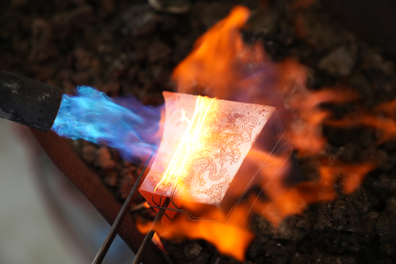 煉銅、鍛片、鏨刻、走銀、成型、拋光、揉黑……經過道道工序,在時間和歲月的沉淀下,獨屬于云南的“奢侈品”——烏銅走銀,以精美雕飾、獨特的文化底蘊展現在世人面前。黑白雙色之間,不僅承載了匠人的心血和智慧,同樣也見證著東方古典美學和傳統文化的發展。