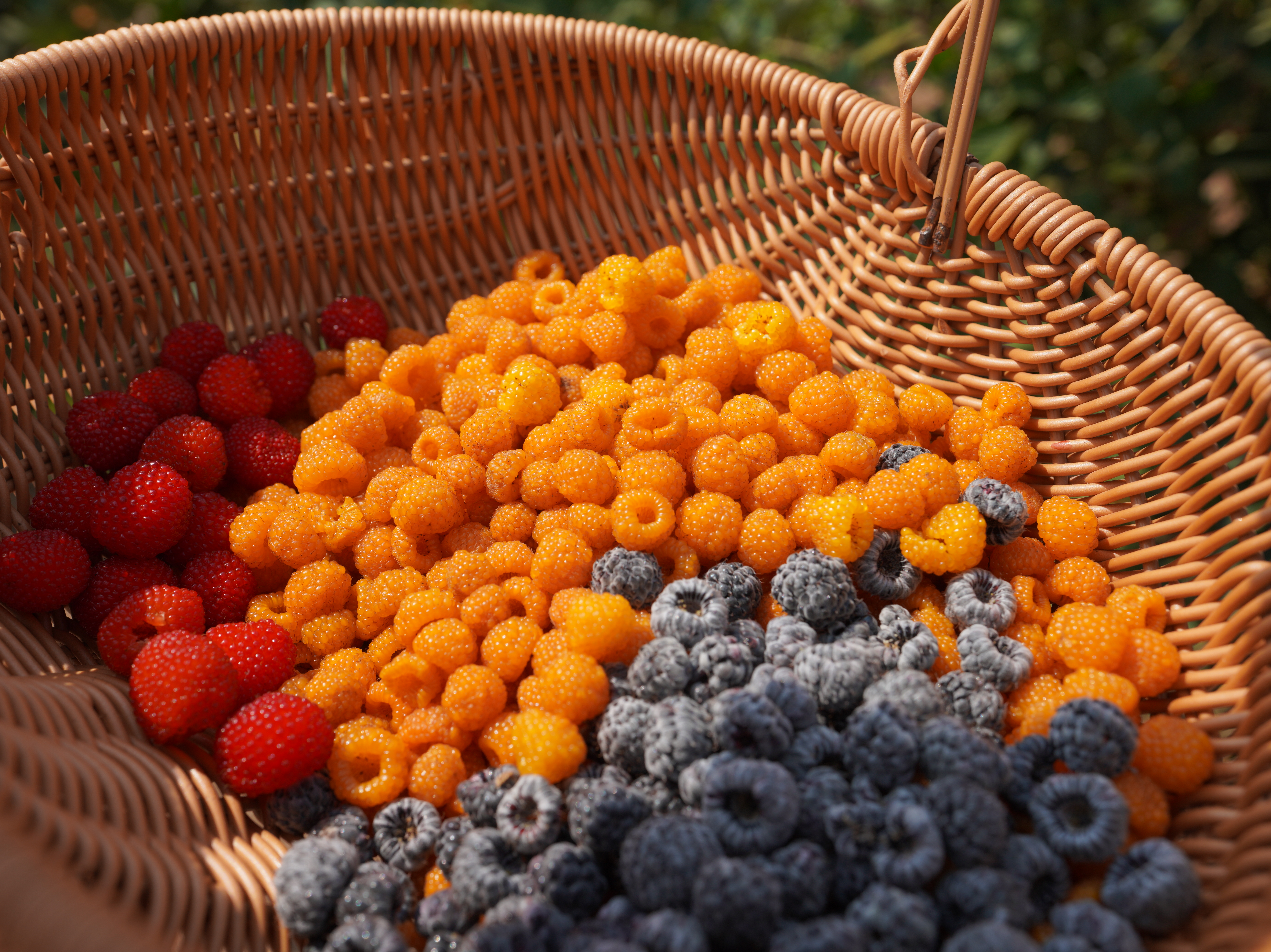 - 近日,在昆明陽宗海七甸街道馬郎社區青松嶺樹莓基地里,一顆顆籽粒飽滿的樹莓掛滿枝頭,紅的、黑的、黃的果實,十分好看。